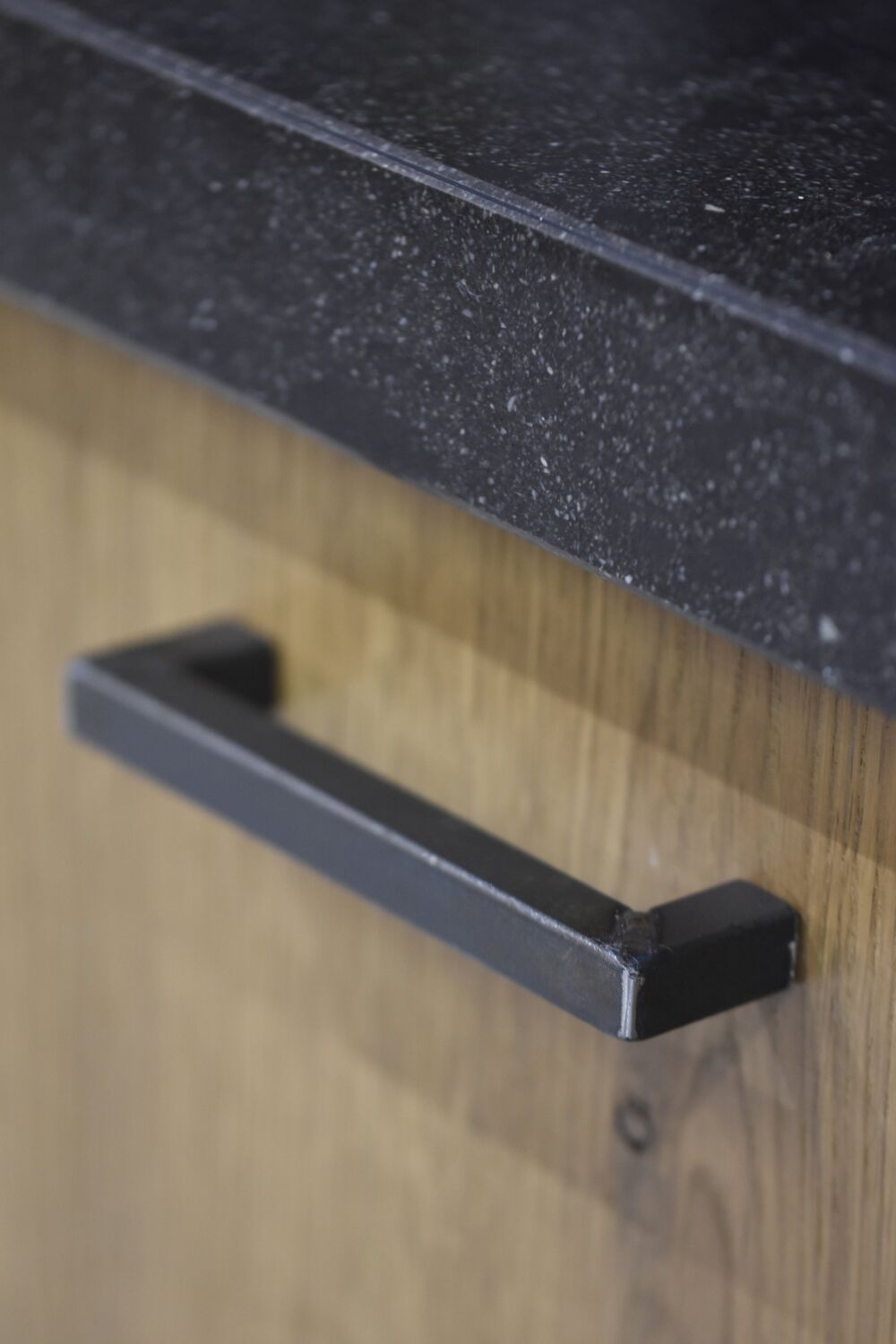 Industriële gelaste stalen greep – zwart staal met zichtbare lasnaden, in 160 en 320 mm