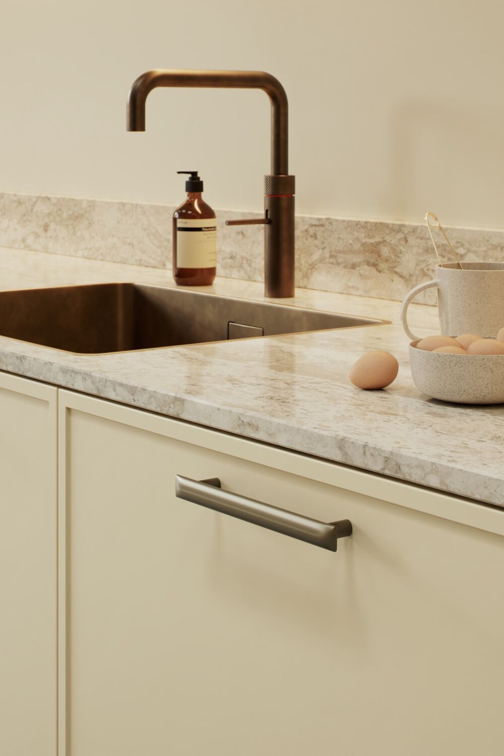 De Greep Flow in Champagne: elegant en tijdloosDe handgreep Flow in champagne is de ideale keuze voor wie luxe en verfijning wil toevoegen aan zijn interieur. Deze handgreep combineert een uniek ovaal design met een zachte, afgeronde afwerking aan de uiteinden. Dit zorgt niet alleen voor een elegante uitstraling, maar maakt de greep ook comfortabel in gebruik. De champagnekleur voegt een warme, chique touch toe aan keukens, badkamers en meubels, en sluit naadloos aan bij zowel moderne als klassieke interieurstijlen.Twee Lengtes voor Maximale FlexibiliteitVerkrijgbaar in 160mm en 320mm, biedt de Greep Flow veelzijdigheid voor allerlei toepassingen. Of je nu kleine kastdeuren of brede lades wilt voorzien van een uniforme en stijlvolle uitstraling, deze maten maken het mogelijk om elk meubelstuk perfect af te werken.Champagne: Luxe en Veelzijdigheid in EénDe champagnekleurige afwerking van de Greep Flow is subtiel en tegelijkertijd opvallend. Deze kleur straalt warmte en elegantie uit, waardoor het een populaire keuze is voor interieurontwerpers en huiseigenaren. Champagne combineert prachtig met neutrale tinten zoals wit, grijs en beige, maar biedt ook een verfijnd contrast bij donkere kleuren. Deze tijdloze kleur voegt een vleugje luxe toe zonder overweldigend te zijn.Eenvoudige MontageDe Greep Flow wordt geleverd met alle benodigde schroeven voor een snelle en eenvoudige montage. Binnen enkele minuten verander je het uiterlijk van je kasten en lades. Dankzij de hoogwaardige materialen en afwerking blijft deze handgreep lang mooi en bestand tegen dagelijks gebruik.Waarom Kiezen voor de Greep Flow Champagne?Uniek ovaal ontwerp met verfijnde, afgeronde uiteinden.Warme champagnekleur, perfect voor een luxe uitstraling.Beschikbaar in 160mm en 320mm, geschikt voor elk meubeltype.Eenvoudig te monteren, inclusief meegeleverde bevestigingsmaterialen.Kies voor de Greep Flow in champagne en voeg een vleugje elegantie toe aan je interieur, zonder concessies te doen aan functionaliteit!