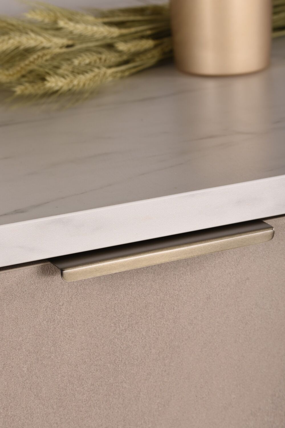 De gun metal afwerking van de Greep IN biedt een eigentijdse uitstraling die perfect aansluit bij de industriële en minimalistische interieurtrends van dit moment. De donkergrijze, matte tint heeft een subtiele glans, wat zorgt voor een verfijnde en toch robuuste look. Deze afwerking geeft uw kasten en lades een modern randje en past goed in zowel lichte als donkere interieurs, waarbij het een opvallend contrast kan vormen of juist een harmonieuze toevoeging is.