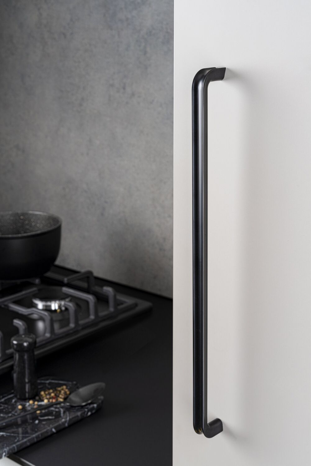 Deze strakke meubelgreep van Viefe uit de Lipp-serie is uitgevoerd in mat zwart en heeft een slank profiel van 12 mm. Met zijn afgeronde hoeken en minimalistische vormgeving past deze greep perfect in moderne en tijdloze interieurs.