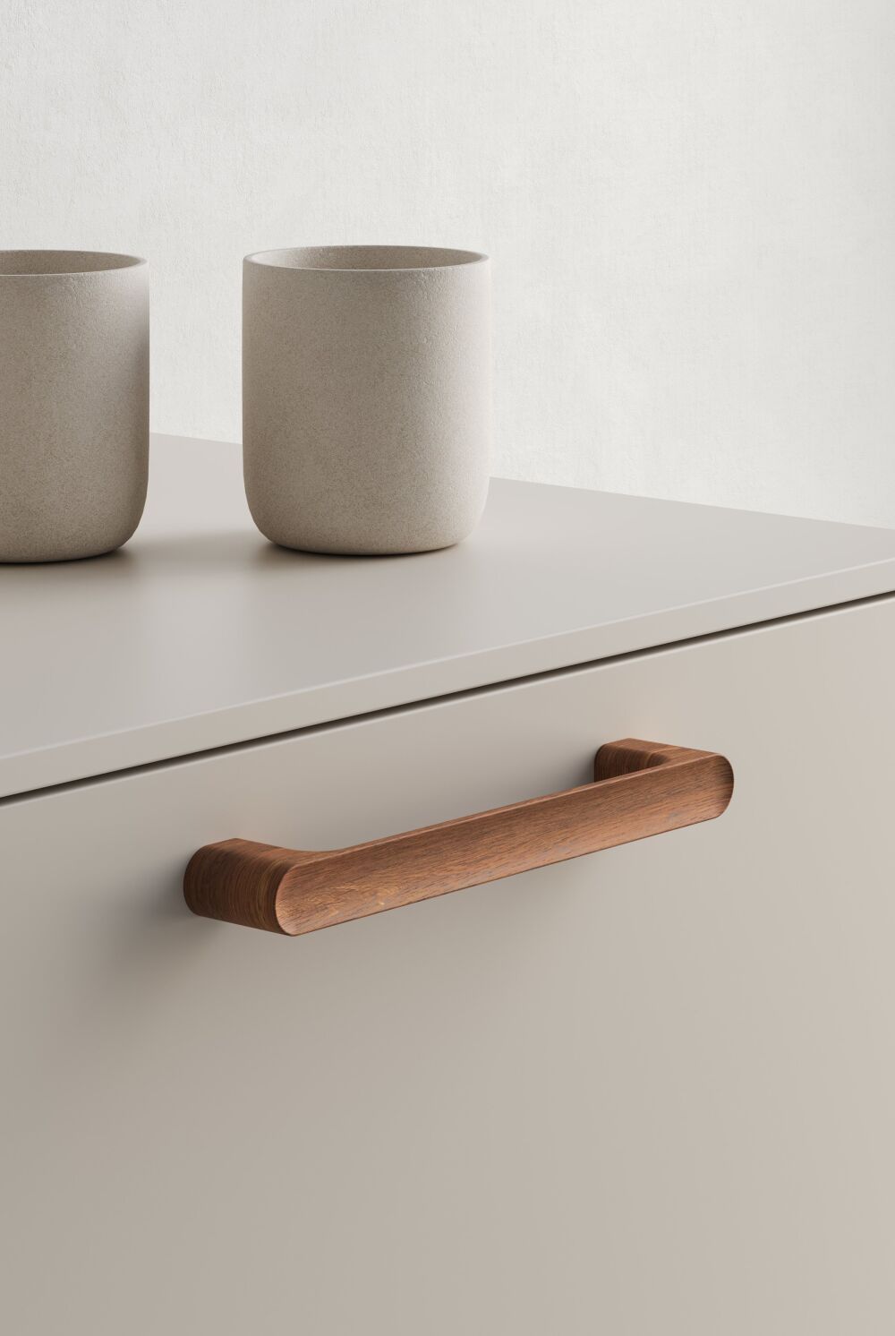 De Luv Wood greep is een verfijnde houten meubelgreep, vervaardigd uit hoogwaardig walnoothout. De warme, diepe kleur en elegante afwerking geven een stijlvolle uitstraling aan elk meubelstuk.